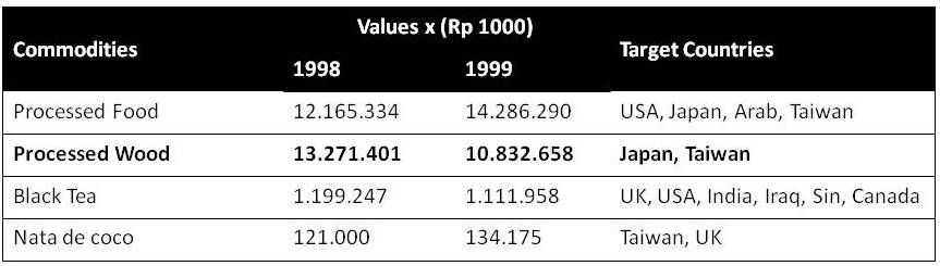 The processed wood export furnishes great amount of foreign exchange (Figure 1). At the period of 1998-1999, the average of it was Rp. 12.1 billions, equals to 45.4% of total non-gasses and oil export. It was astonishment, regard to the Rp. 4,56 billions District Original Revenue (PAD) target. Moreover, most of the raw materials come from community forest.