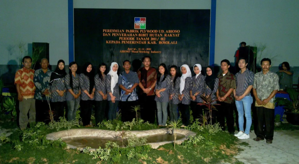 Pada tanggal 9 Agustus 2012, UD Abioso, sebuah industri pengolah kayu di Boyolali mendapatkan sertifikat legalitas kayu dari PT Mutuagung Lestari yang berlaku tiga tahun. Sertifikat legalitas kayu adalah sebuah keterangan untuk menyatakan industri telah memenuhi standar legalitas yang telah diatur dalam Permenhut P.30 2009 dan P.68 2011.