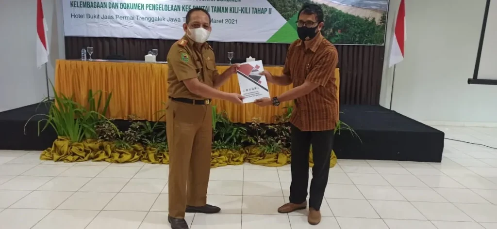Serah terima dokumen kelembagaan dan dokumen pengelolaan KEE dari tim ahli penyusunan dokumen kepada Sekretaris Daerah Trenggalek (Foto: ARuPA)