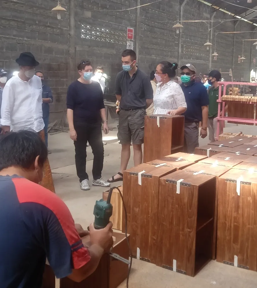 Tim Defra didampingi TIM JIC melihat proses produksi di workshop CV Isanan Furnindo