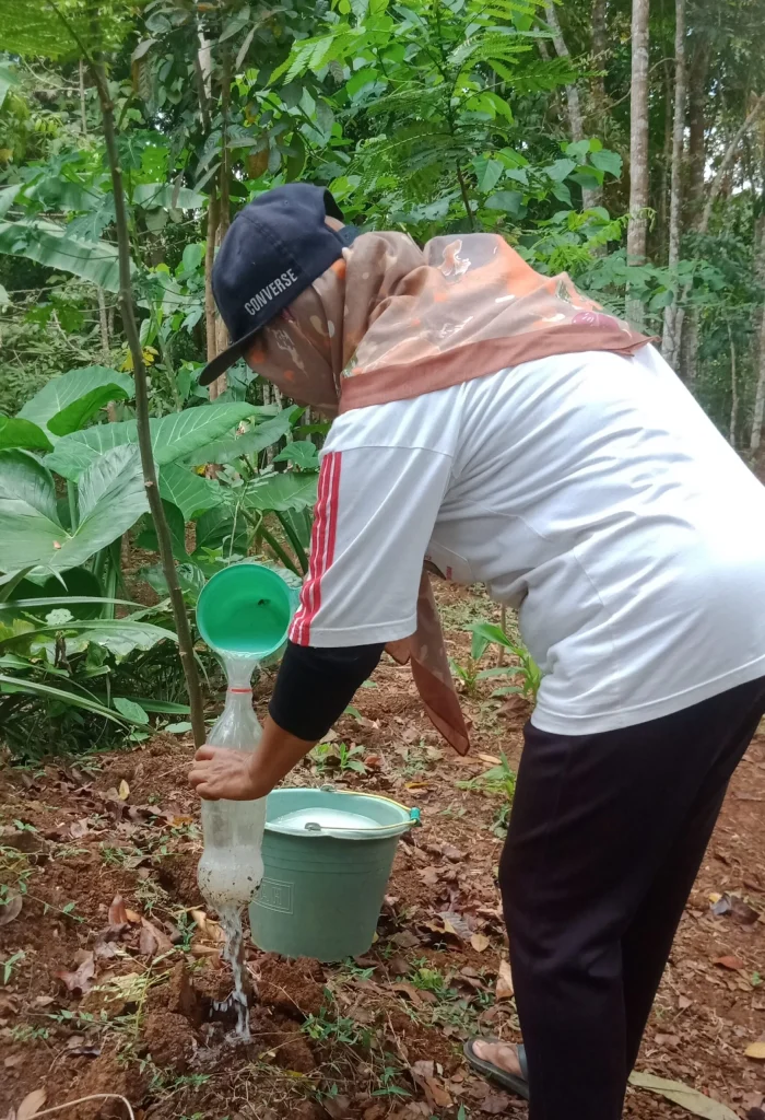 “Berawal dari banyaknya botol air mineral dan lainnya, maka saya mencoba membuat infus pohon. Banyak informasi yang saya dapatkan mengenai tehnik pengairan tanaman. Semua coba, saya buktikan dilapangan, ternyata tidak efektif. Hingga akhirnya saya mencoba sendiri, dengan tehnik yang sederhana, tidak membutuhkan peralatan mahal dan ternyata malah berhasil”, demikian kata Rubikem, seorang petani perempuan di Kalurahan Terong, Dlingo, Bantul.