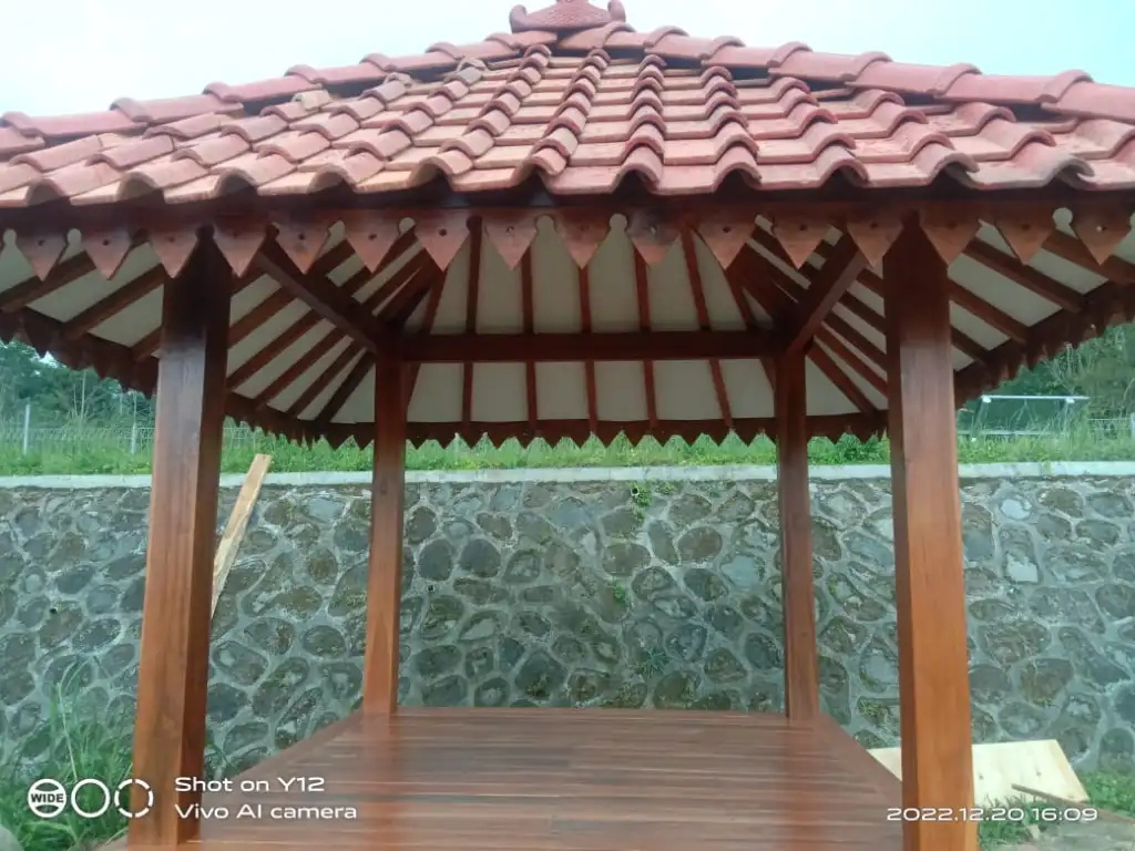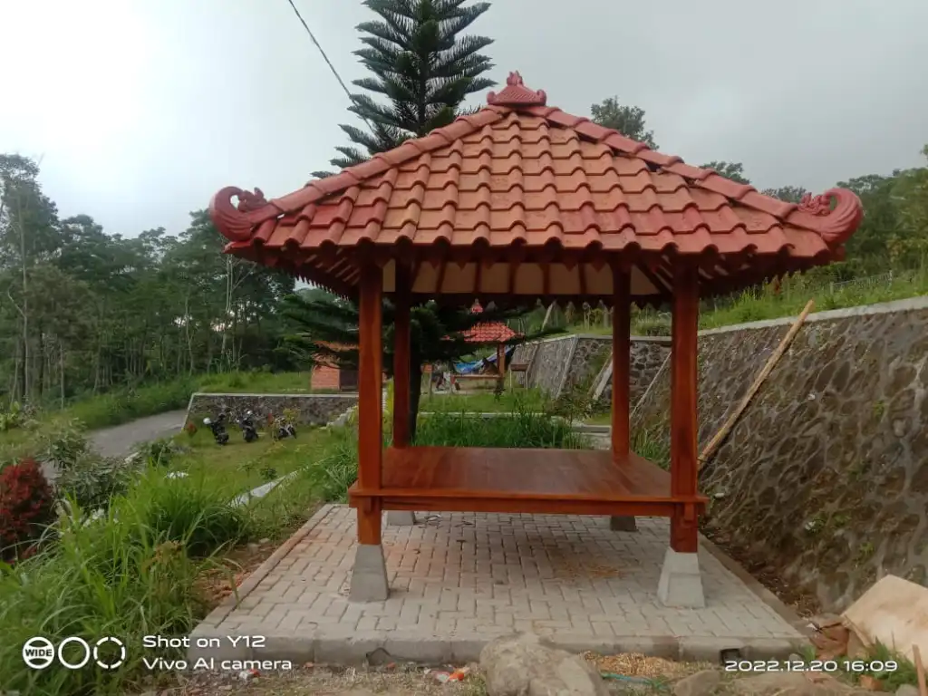 Pembangunan gazebo ini dilakukan oleh tenaga profesional di bidangnya sehingga menghasilkan konstruksi gazebo yang berkualitas. Material yang digunakan adalah kayu jati dan ditambah dengan berbagai ornamen khas rumah Jawa pada bagian atap. Kesan klasik sangat terasa pada gazebo berukuran 2×2 meter, berkat finishing material kayu berupa vernish sehingga menimbulkan efek gilap (glossy) dan memberi kesan mewah. Area lantai dibuat dengan paving dengan total luas lantai 9 m2. Pengunjung dapat bersantai di gazebo sambil menikmati keindahan embung yang asri dengan latar belakang pemandangan Gunung Merapi. Fasilitas gazebo ini dapat dijadikan sebagai spot foto baru bagi para wisatawan.